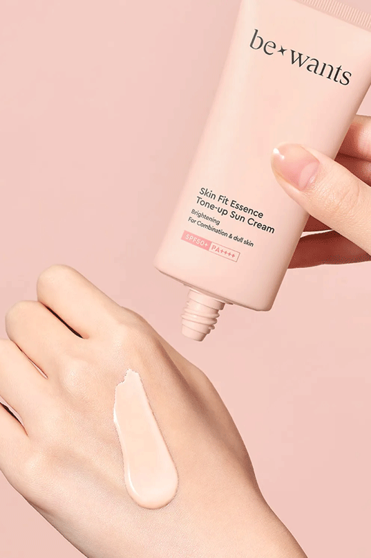 The essence cream formula sunscreen that provides instant cooling and moisturizing benefits with rosy tone-up effect. (50ml)