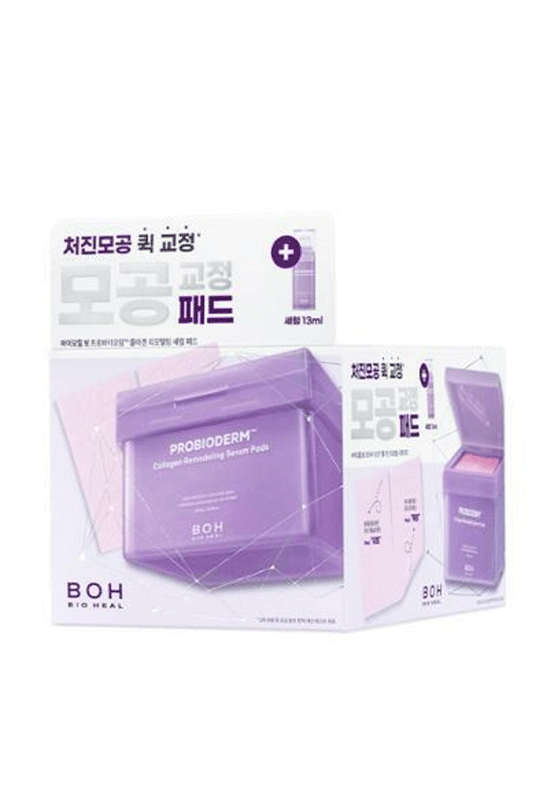 An innovative serum-enriched collagen pads formulated with BIOHEAL BOH's star Probioerm ingredients to refine posres and skin texture while improving elasticity. (70 pads)